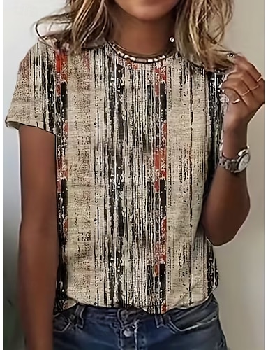 Ystävänpäivä Naisten T-paita Painettu Raidoitettu Tyylikäs Klassinen Vapaa-aika Lyhythihainen Tiukka pyöreä kaula-aukko Tavalliset topit Päivittäin Valkoinen Ruskea Harmaa Kesä Kevät