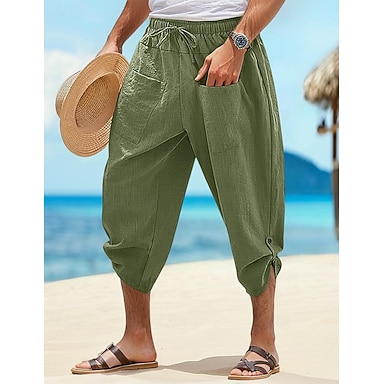 Miesten Pellavahousut Housut Kesähousut Rantahousut Tasku Laskokset Tavallinen Mukavuus Hengittävä Loma Päivittäin Pyhäpäivä Havaijilainen Boheemi Musta Valkoinen