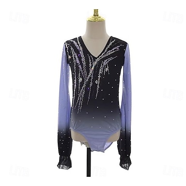 Taitoluistelupuku Naisten Luistimet Hameet Violetti Laivasto Musta Tilkkutäkki Peukalonreikä Erittäin elastinen Kouluts Kilpailu Luisteluasu Klassinen Kristalli / Strassi Pitkähihainen Luistelu