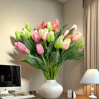 20 kpl keinotekoisia tulppaaneja - realistisia vaaleanpunaisia, keltaisia, valkoisia ja oransseja tekotulppaaneja, joiden koko on 15,35 tuumaa, valmistettu muovista, sopivat kotiin, toimistoon,