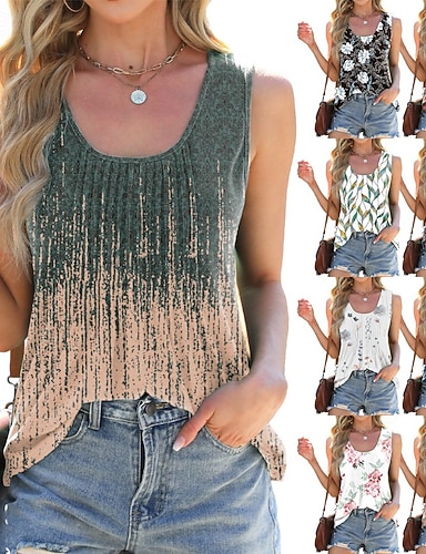 Naisten Pusero Camisole Tank Top Painettu Ombre Kukka Klassinen Moderni Vapaa-aika Hihaton Tiukka pyöreä kaula-aukko Tavalliset topit ulko- Katuvaatteet Pyhäpäivä Musta Valkoinen Vaalean vihreä Apila
