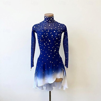 Taitoluistelupuku Naisten Luistimet Hameet Laivasto Tilkkutäkki Avoin selkä Elastinen Kouluts Kilpailu Luisteluasu Klassinen Kristalli / Strassi Pitkähihainen Luistelu Taitoluistelu