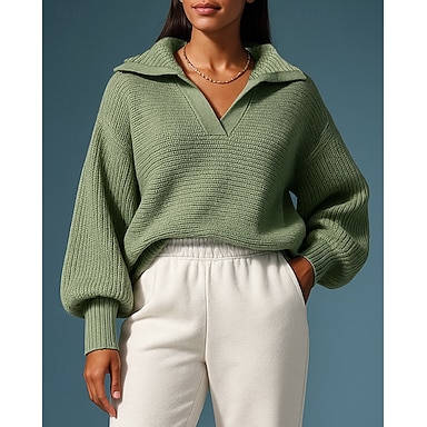 Naisten Yhtenäinen Pusero Rento neulottu villapaita 봄 & Syksy Pitkähihainen Urheilu- ja treenivaatteet V kaula-aukko Lämmin Hengittävä Ulkoilu Valkoinen Punastuvan vaaleanpunainen Apila Urheiluasut