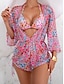 Naisten bikinit 3-osainen uimapuku flirtikka ohut selkä avoin lomaranta pukeutuminen kukkalehdet V-kaula-aukkoinen hihaton uimapuku
