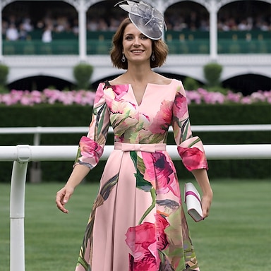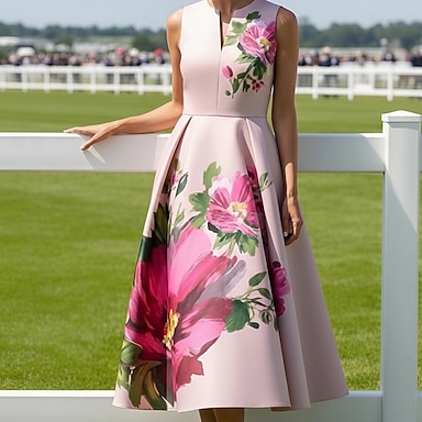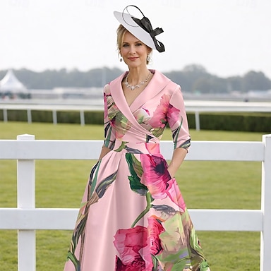 A-linja Nilkkapituinen Derby-mekko Morsiammen äidin asu Hihaton V kaula-aukko Tyylikäs Vintage Kentucky Derby Satiini kanssa Kukkakuvio Tulosta
