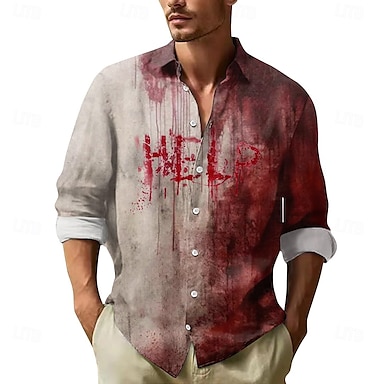 Miesten Veriroiskeet Kirjainkuvioitu Veritahrat Paita Button Up paita Pitkähihainen Dark Punk Gothic Pyhäpäivä Katuvaatteet Kesä Kevät Sänkyjen avaus 3D-tulostus kauluspaidat Punainen 1 Rubiini