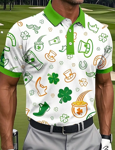 Pyhä Patrickin päivä Miesten Shamrock Golf Urheilu Polo Paidat Lyhythihainen Polo Paidat Kauluspaita Vapaa-ajan Athleisure Festivaali Asu Napit Kevät Kesä Vihreä 2 Vihreä 3 Vihreä 4#