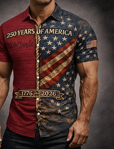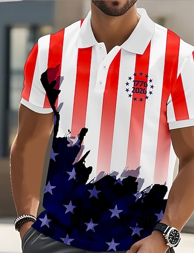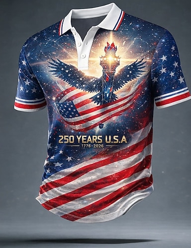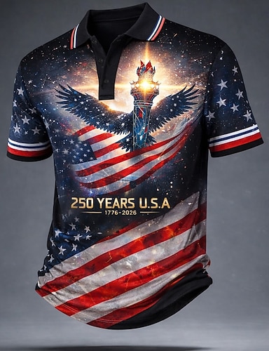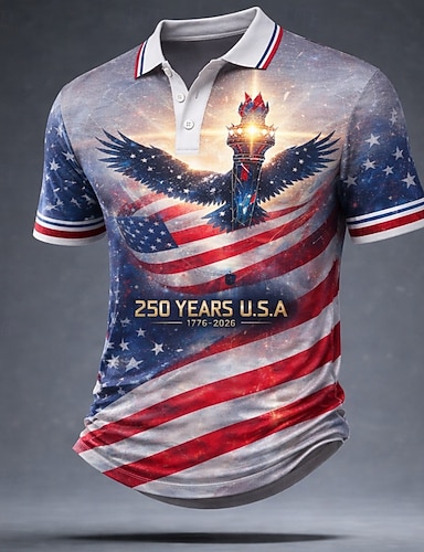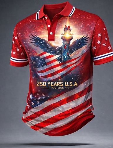 4. heinäkuuta 2026 250. Miesten Yhdysvaltain Yhdysvaltain lippu Golf Urheilu poolopaidat Lyhythihainen Poolopaidat Kauluspaidat Vapaa-aika Urheilu- ja treenivaatteet Festivaalin asu Napit Kesä Rubiini