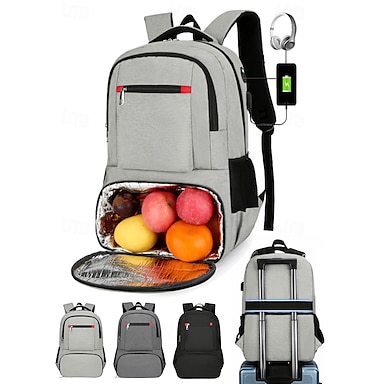 Miesten eristetty kannettavan tietokoneen reppu USB-latausportilla - vedenpitävä liikematkalaukku, jossa on lounaslokero ja heijastavat nauhat työmatkoille, ulkoiluun ja vapaa-ajan matkoille