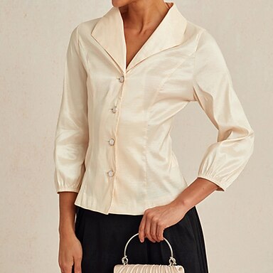 Naisten Paita Mekkoiset topit Rypytetty Tyylikäs 3/4 hiha V kaula-aukko Musta Valkoinen Pölyinen ruusu Khaki Kevät kesä