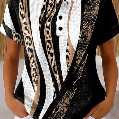 Naisten T-paita Henley-paita Napit Raidoitettu Muoti Lyhythihainen Henley Tavalliset topit Kausaliteetti Hiekkaranta Kesä Valkoinen Punastuvan vaaleanpunainen Taivaan sininen Kesä Kevät