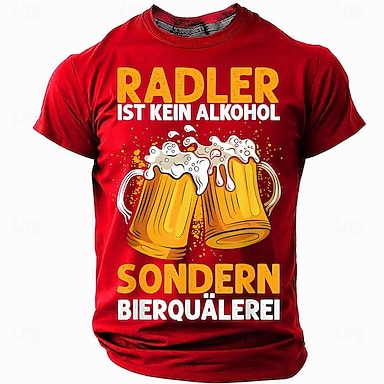 Oktoberfest Miesten Eläkkeellä Saksa T-paita Lyhythihainen T-paita 3D-tulostus Tiukka pyöreä kaula-aukko Paita Muoti Liioiteltu Päivittäin Kausaliteetti Päivittäin Klubi Sininen Musta Rubiini Kes