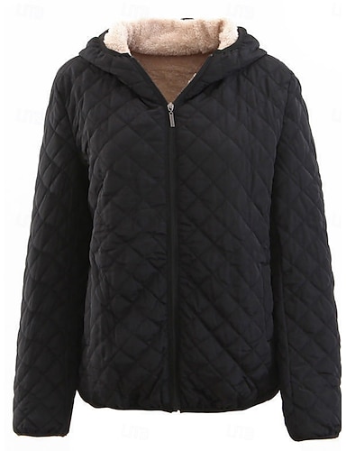 Naisten Talvitakki Sherpa takki Mukava Hengittävä Vetoketju Tasku Vapaa-aika Tavallinen Loma Katu Kausaliteetti Arki-asut Vetoketju Lyhyt Hupullinen Normaali Pitkähihainen Päällysvaatteet Musta