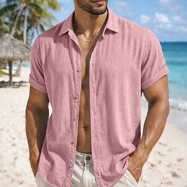 Miesten Paita Tekstuuri Rento paita Button Up paita Jacquard-paita Rubiini Apila khaki Lyhythihainen Geometrinen Tavallinen Paitapuserokaula-aukko Kausaliteetti Päivittäin Reikä Vaatetus Tyylikäs