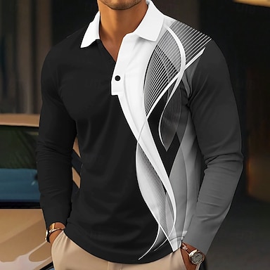 Miesten Raidoitettu Golf poolopaidat Pitkähihainen Poolopaidat Kaulus Business Casual Muodollinen Loma Arkikäyttö Napit 3D-tulostus Kevät Syksy Talvi Musta