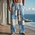 satiini löysät leveät lahkeet loma taiteellinen/retropainatus kausaalihousut