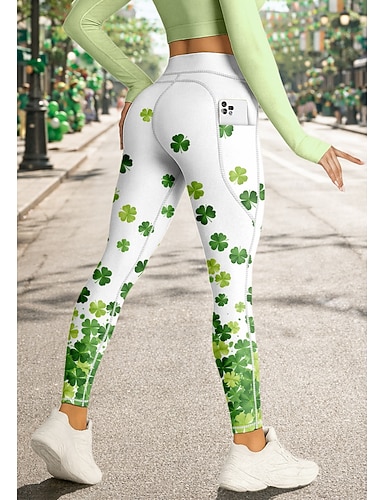 Pyhä Patrick Naisten pilates-legginsit Fitness-housut Urheilulegginsit Taskut Leimavero Sivutaskut Pilates Kuntosali Kuntosaliharjoitus Housut Pyöräily Sukkahousut Leggingsit Kukat תלתן Vihreä Urheilu