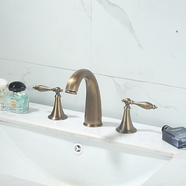 Kylpyhuoneen pesuallas hana - Laajallle ulottuva Antiikkimessinki Kolmiosainen Kaksi kahvaa kolme reikääBath Taps