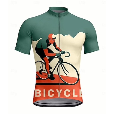 Miesten Pyöräily jersey Kuvitettu Lyhythihainen Pyörä Tee paita Topit 3 takataskulla Maastopyöräily Maantiepyöräily Nopea kuivuminen Etuvetoketju Kosteutta siirtävä Urheilu Sininen Vihreä Khaki