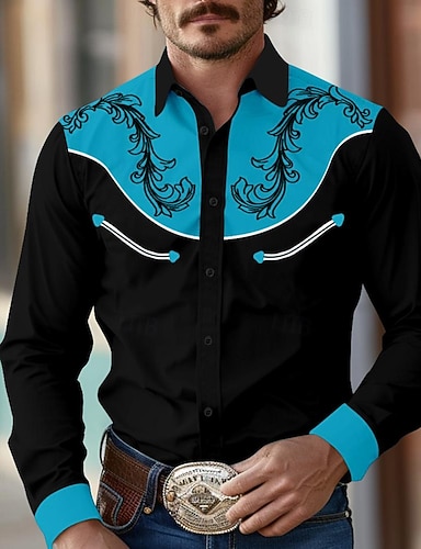 Miesten Kukka Länsimainen paita Cowboy paita Pitkähihainen Läntinen Urheilu Kevät Syksy Sänkyjen avaus Tilkkutäkki Keltainen Rubiini Ruskea Apila Harmaa