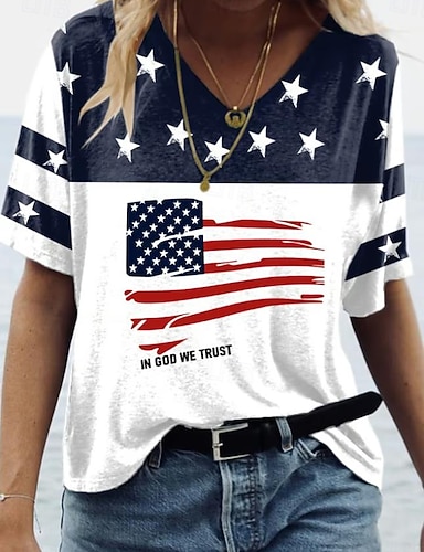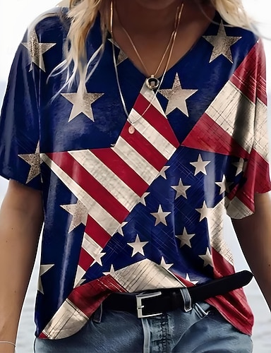 Amerikan itsenäisyyspäivä Naisten T-paita Painettu Kuvitettu Amerikan lippu Vintage Tyylikäs Klassinen Lyhythihainen V kaula-aukko Tavalliset topit Päivittäin Valkoinen Rubiini Kesä Kevät