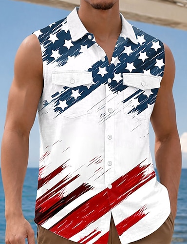 Miesten Yhdysvaltain 250-vuotisjuhla 4. heinäkuuta Yhdysvaltain lippu Patriotismi Paita Button Up paita Hihaton paita Hihaton Muoti rento Pyhäpäivä Kesä Kevät Sänkyjen avaus Kaksi etutaskua Valkoinen