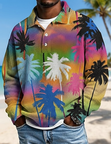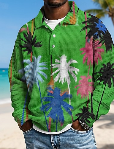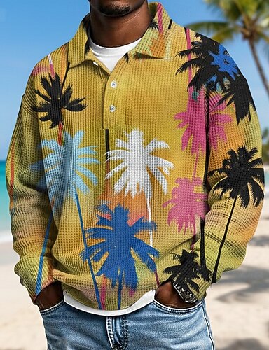 Miesten Palmu Vohveli poolopaidat Pitkähihainen Poolopaidat Kauluskäänne Havaijilainen Urheilu- ja treenivaatteet Arki-asut Lomavaatteet 3D-tulostus Kevät Syksy Talvi Sininen Keltainen Purppura
