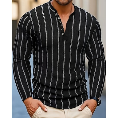 Miesten T-paita Henley-paita Pitkähihainen paita Pitkähihainen Henley Kevät Syksy Pystysuuntaiset nauhat Muoti Katutyyli Vapaa-aika Napit Loma Urheilu ja ulkoilu Kausaliteetti Musta Top T-paita