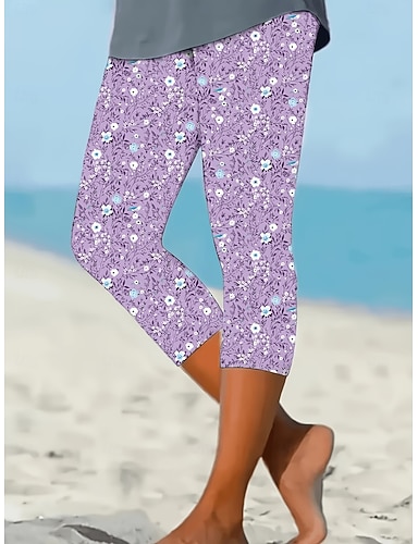 Naisten Kiinalainen Leggingsit Loma Vintage Katutyyli Capris Korka vyötärö Kukka Kuvitettu Tulostus Mukavuus Pehmeä Mukava Elastinen Päivittäin ulko- Loma Purppura Kesä Kevät Syksy Normaali