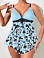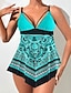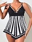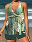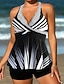 Naisten tankini 2-osainen uimapuku shortsit painatus rantavaate kesä raidallinen ilmanhihaiset uimapuvut