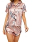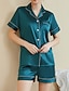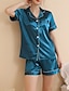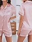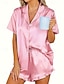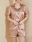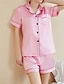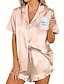 Naisten Yöpuvut loungewear Yöpukusarja Vapaa-aika Pehmeä Satiini Puhdas väri Napit Shortsit Päivittäin Koti Sänky Lyhythihainen Paitapuserokaula-aukko Sininen Vaalea vaaleanpunainen Musta Punastuvan
