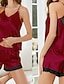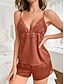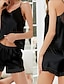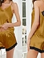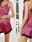 Naisten Yöpuvut Yöpukusarja Vapaa-aika Pehmeä Satiini Puhdas väri Pitsi Avoin selkä Shortsit Päivittäin Koti Sänky Hihaton hihnat Punastuvan vaaleanpunainen Rubiini Purppura Apila Khaki Kesä Normaali