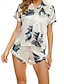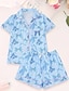 Naisten Yöpuvut loungewear Yöpukusarja Muoti Vapaa-aika Mukavuus Kuvitettu Puhdas väri Painike ylös Joustava vyötärö Shortsit Päivittäin Koti Loma Lyhythihainen Paitapuserokaula-aukko Sininen Kes
