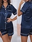Naisten Yöpuvut loungewear Yöpukusarja Muoti Vapaa-aika Mukavuus Raita Puhdas väri Painike ylös Röyhelö Joustava vyötärö Shortsit Päivittäin Koti Loma Lyhythihainen Paitapuserokaula-aukko Sininen
