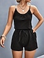 Naisten Potkupuku Aktiivinen Yhtenäinen väri Hihaton Roikkuva shortsit U kaula-aukko Kurenauha Tasku Päivittäin Loma Normaali Musta Viini Apila Kesä