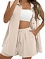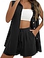 Naisten Shortsit setit Hihaton Paitapuserokaula-aukko Tavallinen Rypytetty Kurenauha Tyylikäs Muoti Katutyyli Kausaliteetti Päivittäin ulko- Sininen Musta Valkoinen Kesä Normaali