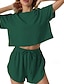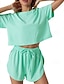 Naisten Kaksiosaiset setit Shortsit setit Lyhythihainen Tiukka pyöreä kaula-aukko Yhtenäinen väri Muoti Katutyyli Kausaliteetti Päivittäin ulko- Vaalean vihreä Punastuvan vaaleanpunainen Apila Kesä