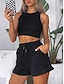 Naisten Kaksiosaiset setit Hihaton Shortsit setit Hihaton Tiukka pyöreä kaula-aukko Tavallinen Muoti Katutyyli Kausaliteetti Päivittäin ulko- Musta Vaalean vihreä Punastuvan vaaleanpunainen Kesä