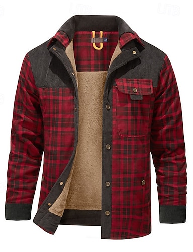 Miesten Talvitakki Fleecetakki Rento takki Kausaliteetti Päivittäin Pidä lämpimänä Tasku Painike alas Syksy Talvi Skottiruutukuvio Katutyyli Päivittäin Pystykaulus Normaali Rubiini Tumman vihre