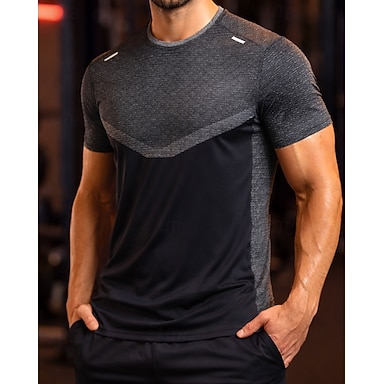 Miesten Väripalikka Juoksupaita Kompression Paita Urheilullinen paita Urheilullinen toppi Kesä Heijastinnauha Lyhythihainen Nopea kuivuminen Kosteuden siirtävä Hengittävä Kuntosaliharjoitus Kävely