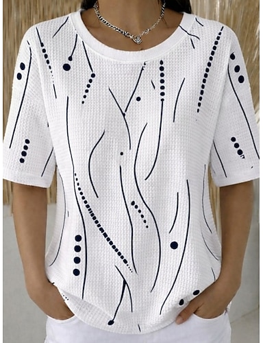 Naisten vohvelit-paita tulostus graafinen geometrinen abstrakti vintage tyylikäs klassinen lyhythihainen crew-neck säännölliset yläosat päivittäiset sininen keltainen violetti oranssi kesä kevät