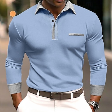 Miesten Poolopaidat Golf poolopaidat Katu liiketoiminta Kauluskäänne Classic Pitkähihainen Muoti Perus Tilkkutäkki Tasku Väripaletti Syksy Talvi Läpi vuodenaikojen Normaali Vaalean sininen