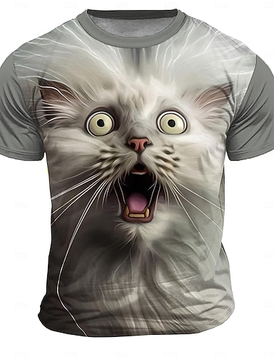Miesten Kissa Hauska T-paita Lyhythihainen T-paita 3D-tulostus Tiukka pyöreä kaula-aukko Paita Liioiteltu Suunnittelija Juhla Pyhäpäivä Harmaa Kesä Kevät Vaatetus S M L XL XXL XXXL