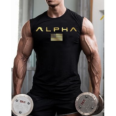 Miesten Kirjain Harjoittelu T-paita Juoksutoppi Urheilutoppi Kesä Kevät Syksy Hihaton Nopea kuivuminen Puristus Kosteuden siirtävä Kuntosaliharjoitus Aktiivinen koulutus Liikunta Musta Valkoinen Kulta