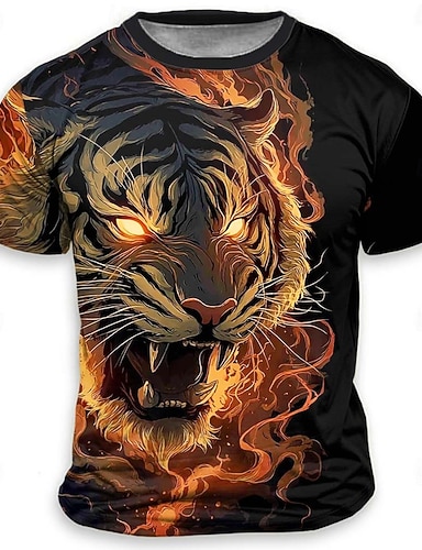 Miesten Eläin Tiikeri Hauska T-paita Lyhythihainen T-paita 3D-tulostus Tiukka pyöreä kaula-aukko Paita Liioiteltu Suunnittelija Juhla Pyhäpäivä Musta 1 Musta 3 Musta 2 Kesä Kevät Vaatetus S M L XL