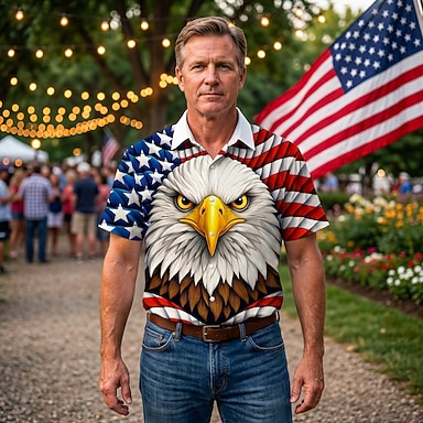 Pusero / hame Itsenäisyyspäivä Retro / vintage 1970 luku Lyhyet hihat varten Miesten Aikuisten varten 4. heinäkuuta Itsenäisyyspäivä