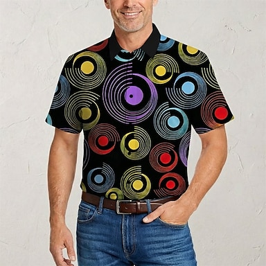 Retro / vintage Hippi 1970 luku Pusero Lyhyet hihat Hippi Geometrinen Retro Naamiaispuku Miesten musiikkifestivaali Juhla Arki-asut Aikuisten Pusero Kevät kesä