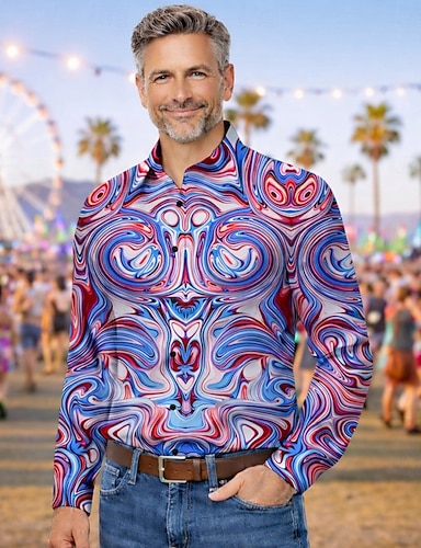 Retro / vintage 1970 luku Pusero Disko Geometrinen Psykedeelinen Naamiaispuku Miesten Halloween Karnevaali musiikkifestivaali Pride-paraati Aikuisten Pusero