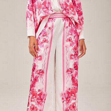 Naisten Midimekko Väljä mekko Vapaa-aika Päivittäin Bile Loose Fit Kukka Kuvitettu Trooppinen Pitkähihainen V kaula-aukko Sininen Punastuvan vaaleanpunainen Rubiini Kesä Kevät