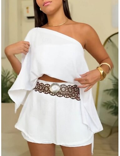Naisten Hame setit 3/4 hiha Yksiolkaiminen Tavallinen Muoti Katutyyli Kausaliteetti Päivittäin ulko- Musta Valkoinen Keltainen Kesä Loose Fit